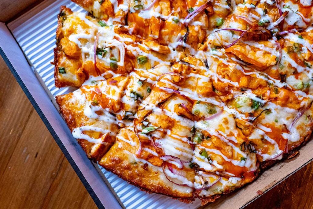 Die Kombination aus einer frisch zubereiteten 'Custom Pizza' und den berühmten Flügeln, begleitet von einem kühlen Getränk, schafft ein vollständiges und befriedigendes Essenserlebnis. Es ist die Möglichkeit, ein ganzes Menü zusammenzustellen, das genau auf die eigenen Vorlieben abgestimmt ist, von der Hauptspeise bis zu den kleinen Extras. Dies macht 'Custom Pizza' zu einem idealen Ort für jeden Anlass, sei es ein schnelles Mittagessen, ein gemütliches Abendessen mit der Familie oder eine Feier mit Freunden.