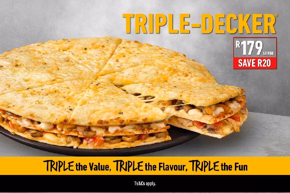Wenn man an Debonairs Pizza denkt, kommt man an den revolutionären Triple-Decker®-Pizzen nicht vorbei. Diese einzigartige Kreation mit drei Schichten Teig und üppigen Füllungen ist ein Markenzeichen von Debonairs und bietet ein unvergleichliches Geschmackserlebnis. Aber die Innovationen hören hier nicht auf. Debonairs hat auch andere bahnbrechende Konzepte eingeführt, wie die „Crammed-Crust®“-Pizzen, bei denen der Rand mit Käsegrillern gefüllt ist, oder die „Double-Stack®“-Pizzen mit einer geheimen Frischkäsefüllung zwischen zwei knusprigen Böden. Diese ständige Suche nach neuen und aufregenden Möglichkeiten, Pizza zu genießen, hat Debonairs an die Spitze der Pizza-Industrie in Südafrika katapultiert.