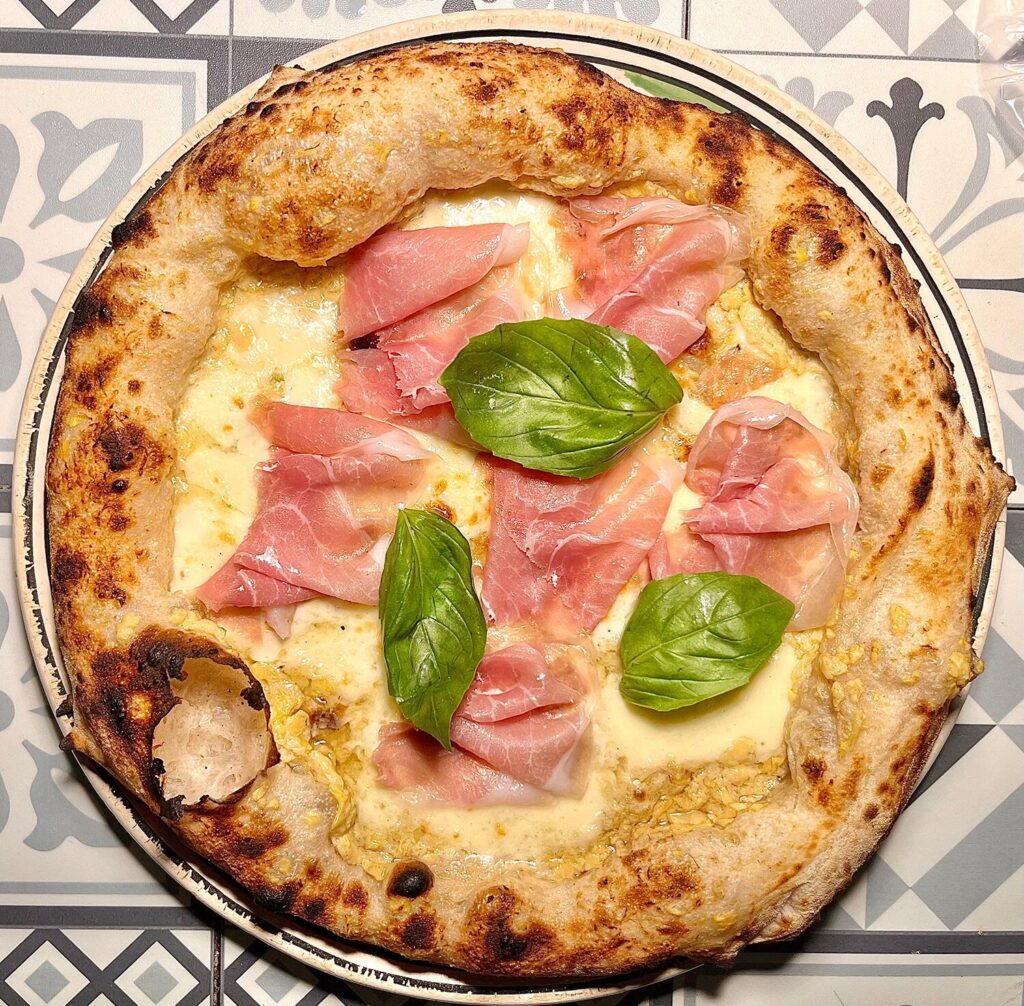 Ihre Pizzen werden in einem ihrer beiden Holzofen in der großen, blau gefliesten offenen Küche gebacken. Die Speisekarte wechselt monatlich und ist relativ klassisch mit modernen Akzenten – die klassische Margherita ist mit 12 € sehr preiswert, und ihre von Süditalien inspirierte „Pablo Picapesto“ enthält gebratene Auberginen, Ricotta und Pesto. Ihre scharfe Variante hat Nduja, geräucherte Stracciatella und Sardellen – nicht besonders traditionell, aber sehr gut.