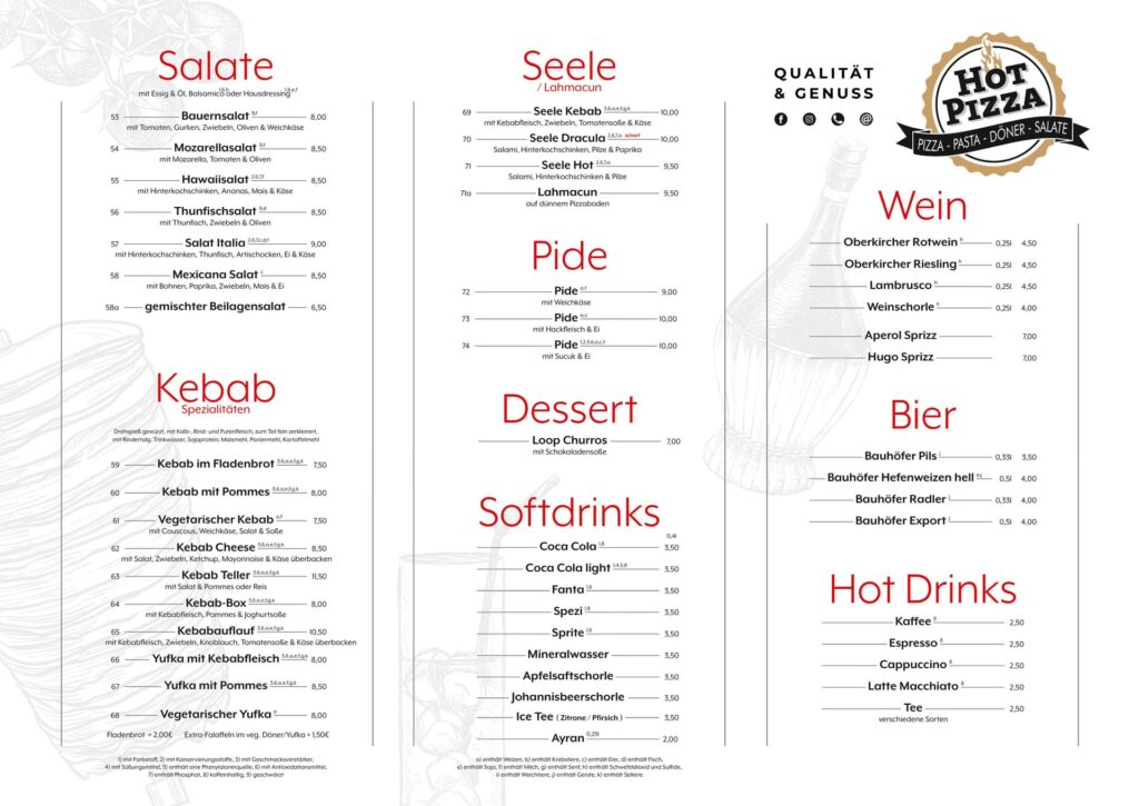- Die Vielfalt der Speisekarte: Pizza, Kebap & Pasta