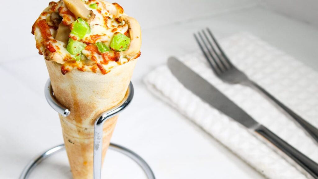 Ein Kono Pizzahörnchen ist eine innovative Art, Pizza zu genießen. Es handelt sich um einen knusprigen, speziell geformten Teig, der mit typischen Pizzazutaten wie Sauce, Käse und verschiedenen Belägen gefüllt und dann gebacken wird. Das Ergebnis ist ein handlicher, sauber zu essender Snack, perfekt für unterwegs.