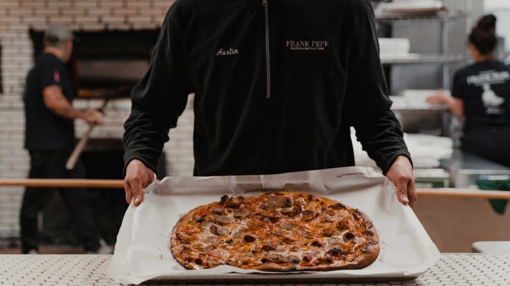 Das Versprechen von Frank Pepe Pizzeria Napoletana ist einfach, aber tiefgreifend: immer großartigen Geschmack und gute Zeiten zu erwarten. Dieses Versprechen wird durch eine unerschütterliche Hingabe an die Qualität der Zutaten untermauert. Bei Pepe's wird jeder Schritt des Zubereitungsprozesses mit größter Sorgfalt überwacht, denn die Philosophie lautet: Wenn es nicht perfekt ist und genau so zubereitet wurde, wie bestellt, wird es nicht an den Kunden geschickt.