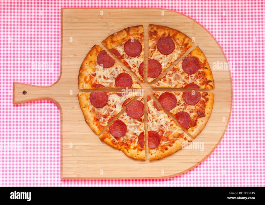 1. Vorbereitung: Legen Sie die aufgewärmte Pizza auf ein Schneidebrett oder einen großen Teller. Stellen Sie sicher, dass die Oberfläche stabil ist und Sie genügend Platz haben.