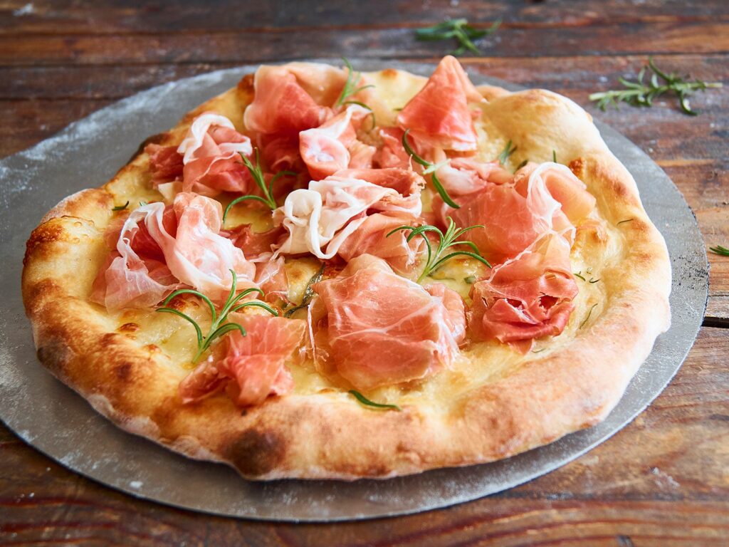 Die Pizza Romana wird bei einer etwas niedrigeren Temperatur (ca. 300°C bis 400°C) und über einen längeren Zeitraum gebacken als die neapolitanische Pizza – typischerweise zwischen 2 und 4 Minuten. Diese moderate Hitze und längere Backzeit ermöglichen es dem dünnen Teig, vollständig durchzugaren und seine charakteristische Knusprigkeit zu entwickeln, ohne zu verbrennen.