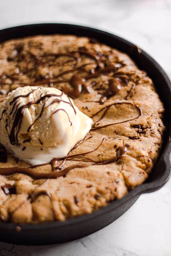 Dieser zartschmelzende Keksteig ist am besten, wenn er sofort nach dem Backen genossen wird, warm und mit einer Kugel Eiscreme, die langsam schmilzt und sich mit der warmen Schokolade vermischt. Ein zusätzlicher Schokoladensauce-Regen, ein Hauch von Puderzucker oder sogar ein paar frische Beeren können das Erlebnis noch perfektionieren.