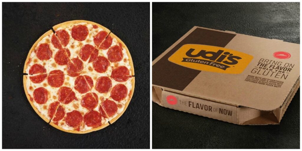 Pizza Hut bietet in über 2.800 seiner Filialen glutenfreie Pizzen an. Diese werden mit zertifiziertem Udi’s® Gluten-Free Crust zubereitet. Udi's ist eine bekannte Marke im Bereich glutenfreier Produkte und bietet eine hohe Qualität. Die Pizzen sind ausschließlich in der 10-Zoll-Größe erhältlich. Besonders hervorzuheben sind die Käse- und Pepperoni-Pizzen auf Udi’s® Kruste, die von der Gluten Intolerance Group (GIG) zertifiziert sind. Diese Zertifizierung bietet ein hohes Maß an Sicherheit für Zöliakiebetroffene, da sie bedeutet, dass strenge Protokolle zur Vermeidung von Kreuzkontamination eingehalten werden.