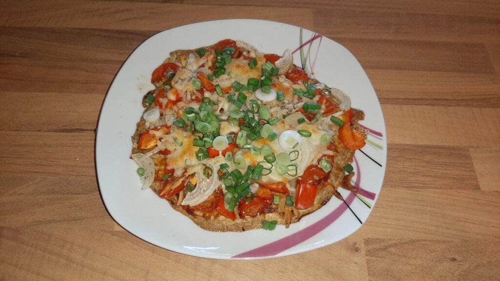 | Kohlenhydrate | Sehr niedrig (ca. 15 g pro ganze Pizza) | Sehr hoch (deutlich über 100 g pro Pizza) |