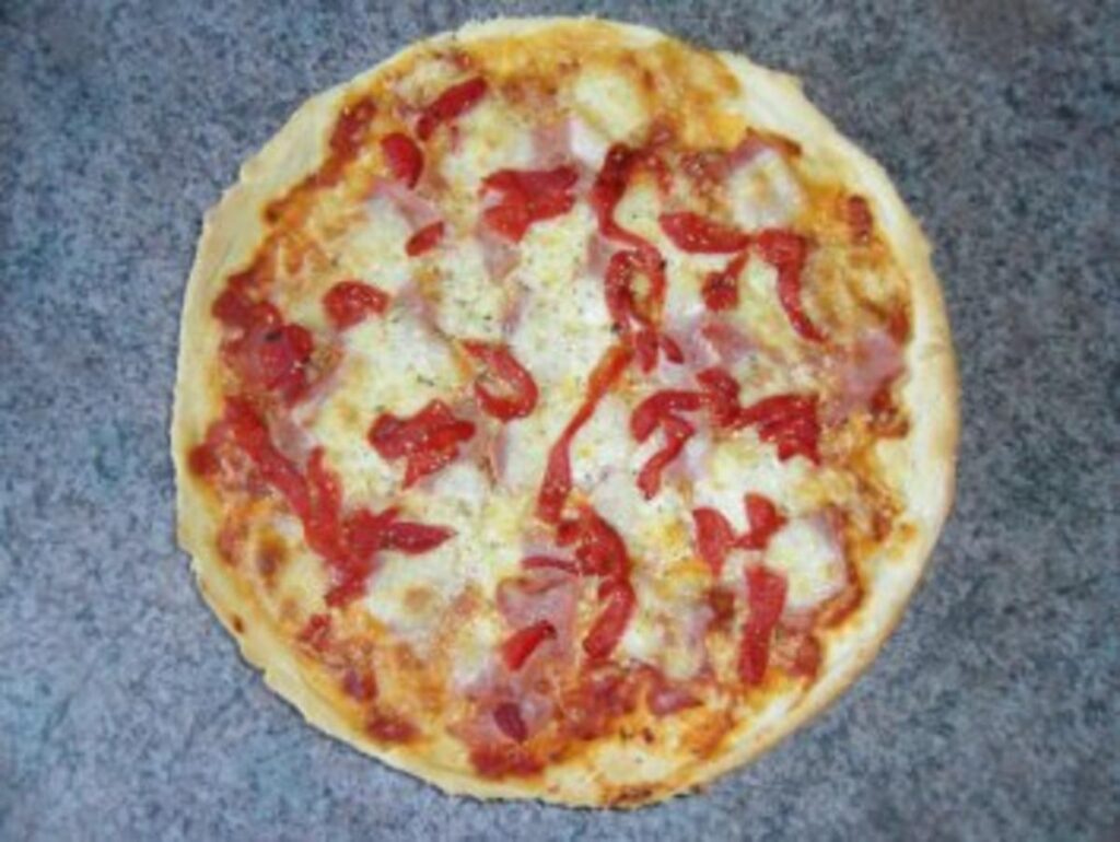 - Vegetarisch: Paprikawürfel, Mais, Zwiebelringe, Olivenstücke.