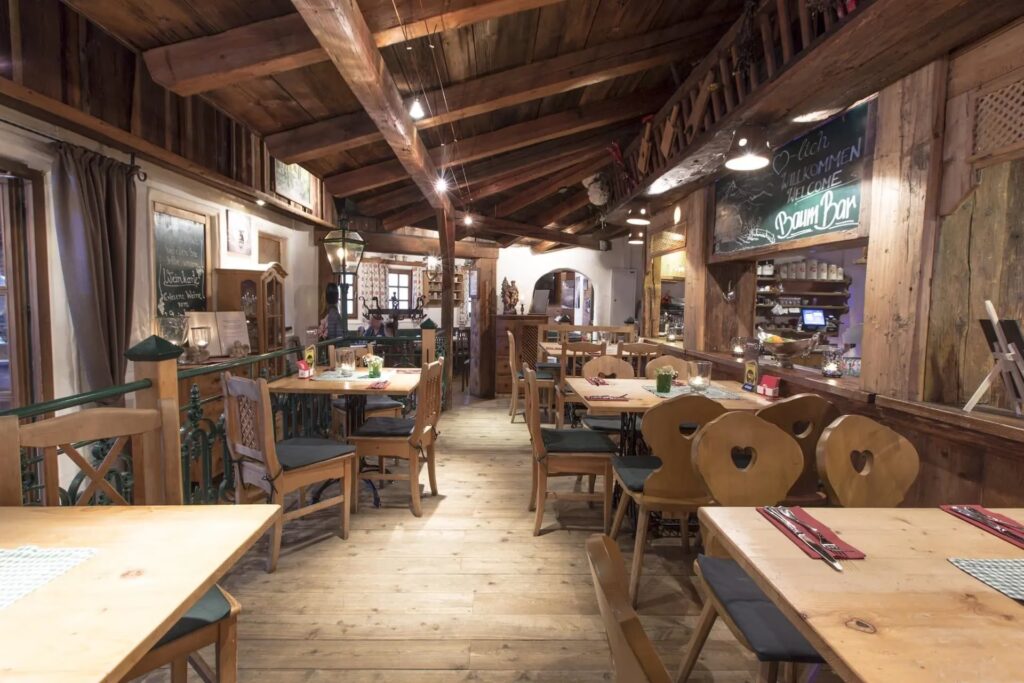 Die Baumbar in Kaprun hat sich einen Namen gemacht, nicht zuletzt wegen ihrer herausragenden Küche. Hier wird Wert auf Qualität, Frische und die Liebe zum Detail gelegt, die man in jedem Bissen schmeckt. Die Speisekarte ist eine Hommage an die regionale Küche, angereichert mit internationalen Akzenten, die selbst anspruchsvolle Gaumen begeistert. Die Baumbar versteht es meisterhaft, traditionelle Gerichte neu zu interpretieren und dabei den authentischen Geschmack zu bewahren.