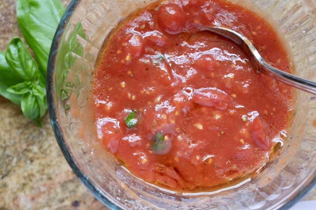 - Tomatenwahl: Wenn Sie keine zerkleinerten Tomaten finden, können Sie gewürfelte Tomaten verwenden und diese kurz in einem Mixer pürieren.