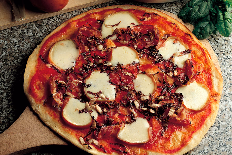 Scamorza ist ein hervorragender Pizzakäse. Dank seiner geringeren Feuchtigkeit im Vergleich zu Mozzarella sorgt er für eine weniger wässrige Pizza und schmilzt zu einer wunderbar goldbraunen, leicht knusprigen Kruste. Für eine klassische Margherita können Sie frischen Scamorza verwenden, um einen milden, milchigen Geschmack zu erzielen. Wenn Sie eine Pizza mit kräftigeren Belägen wie Salami, Pilzen oder scharfen Paprikawurst bevorzugen, ist der geräucherte Scamorza die ideale Wahl, da sein intensives Aroma perfekt mit diesen Zutaten harmoniert und dem Gericht eine zusätzliche Geschmacksebene verleiht. Auch in Lasagne, Gratins oder Auberginen-Parmigiana schmilzt er hervorragend und bildet eine köstliche Käseschicht.
