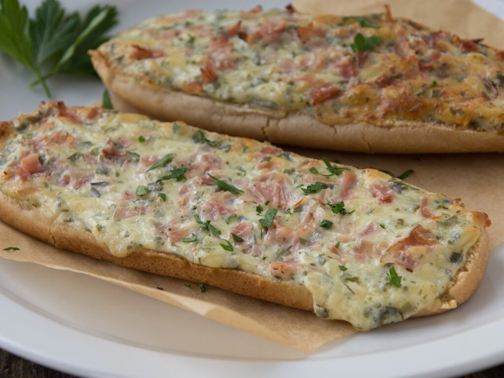 Der Name „Briegelschmiere“ ist so charmant wie das Gericht selbst und verrät bereits viel über seine Beschaffenheit. „Briegel“ bezeichnet im Schwäbischen eine Art Brötchen oder Brot, das in seiner Konsistenz etwas fester und größer ist als gewöhnliche Frühstücksbrötchen. Die „Schmiere“ hingegen ist der herzhafte Belag, eine sämige Mischung aus cremigen Komponenten, geräuchertem Schinken, Käse und frischen Kräutern, die dünn auf die halbierten Briegel gestrichen wird. Das Ganze wird dann im Ofen gebacken, bis der Belag goldbraun und leicht knusprig ist und die Basis eine perfekte Textur annimmt.