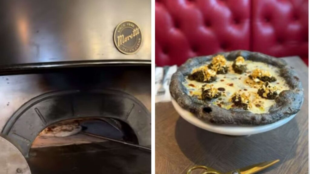 Die Grundlage dieser luxuriösen Kreation bildet ein Pizzateig, der mit Sepia-Tinte tiefschwarz eingefärbt wird. Dies verleiht der Pizza nicht nur eine auffällige Optik, sondern auch eine subtile geschmackliche Tiefe. Bevor sie in den Ofen gleitet, wird sie mit cremigem Fior di latte, einem hochwertigen Mozzarella, belegt. Interessanterweise sucht man auf der „Mamma Rich“ vergebens nach der klassischen Tomatensauce – hier steht die Reinheit und Qualität der anderen Komponenten im Vordergrund. Direkt nach dem Backen wird die Pizza mit Stracciatella di burrata verfeinert, einer zarten Creme aus Sahne und Käse, die für eine zusätzliche Dimension von Reichhaltigkeit sorgt.