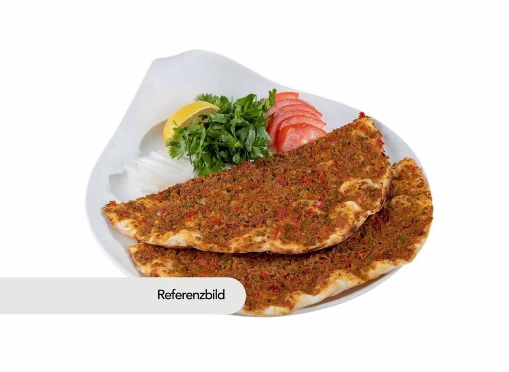 Lahmacun ist ein weiteres türkisches Gericht, das oft als „türkische Pizza“ bezeichnet wird, obwohl es sich stark von Pide unterscheidet. Lahmacun ist ein sehr dünner, runder Fladen aus Hefeteig, der vor dem Backen mit einer würzigen Mischung aus Hackfleisch (oft Lamm oder Rind), Tomaten, Paprika, Zwiebeln und einer kräftigen Dosis Petersilie belegt wird. Im Gegensatz zu Pide wird Lahmacun ohne Käse zubereitet und ist in der Regel schärfer gewürzt.