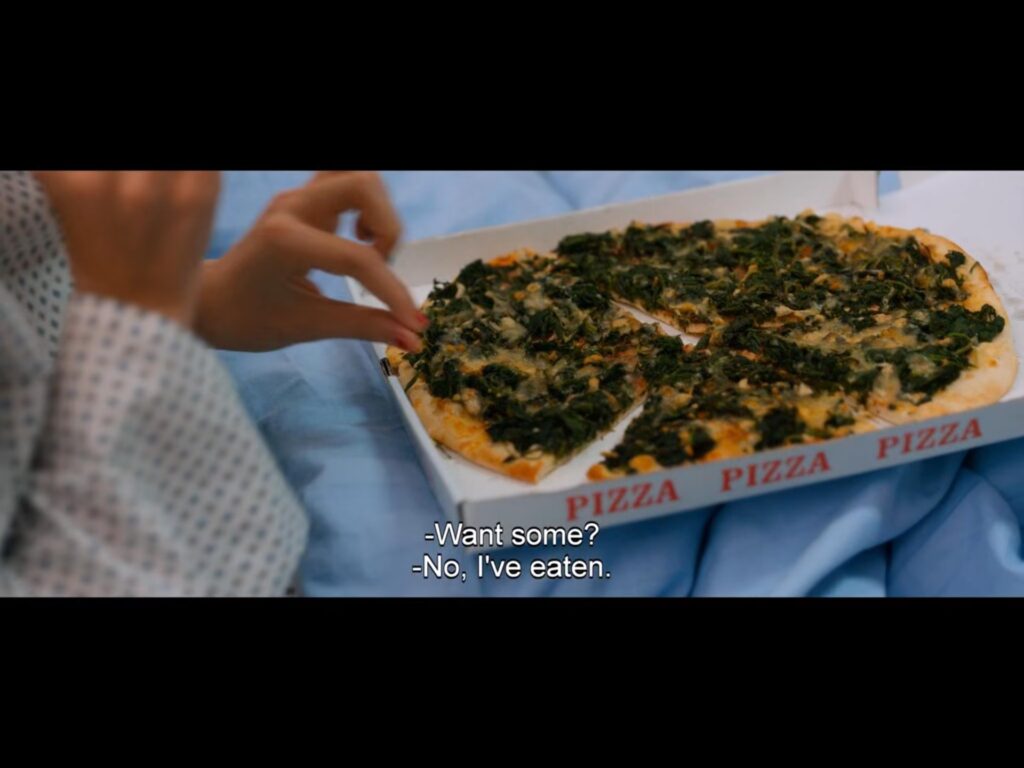 Pizza mit „Spezialzutat“: Helen teilt eine Scheibe Pizza und eine magenverdrehende urbane Legende mit ihrem Schwarm, dem netten Krankenpfleger Robin. Die Geschichte handelt von zwei Mädchen, die Pizza bestellen. Als diese nicht kommt, beschweren sie sich wiederholt. Endlich kommt sie an, schmeckt aber „komisch“. Die „Spezialzutat“ in der Soße ist Sperma von vier verärgerten Pizzalieferanten. Helens Erzählung ist dabei detailliert und ungeschönt. Diese Sequenz ist widerlich, aber gleichzeitig urkomisch, da der Höhepunkt zu einem klassischen Musikkrescendo führt. Helen erzählt diese Geschichte, um sich reifer und wagemutiger erscheinen zu lassen. Doch weil es Helen ist, die an jeder Stelle die Grenzen überschreiten muss, geht sie noch weiter und sagt Robin, dass sie diese Pizza essen möchte. Ihre Lust am Leben kennt keine Grenzen oder Anstandsregeln. Doch dieser grinsende Krankenpfleger, der ihr hilft, Bier und Pizza zu schmuggeln, scheint sich davon kein bisschen stören zu lassen.